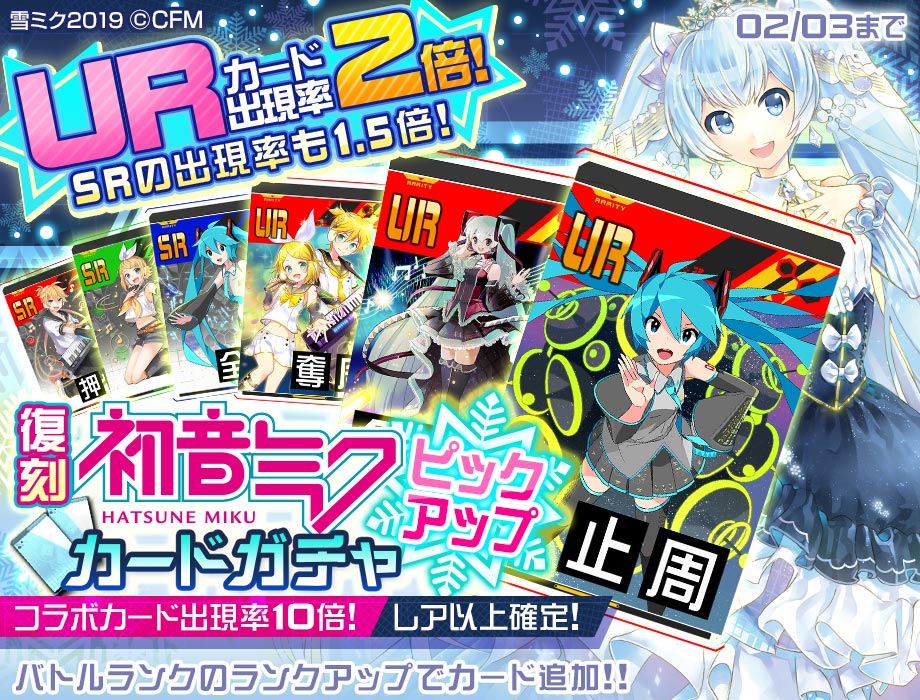 「初音ミク」をテーマとした、URカード出現率2倍!SRカード出現率も1.5倍のガチャを実施!