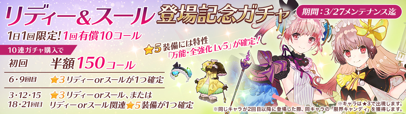 ■ 期間限定「リディー&スール登場記念ガチャ」実施!