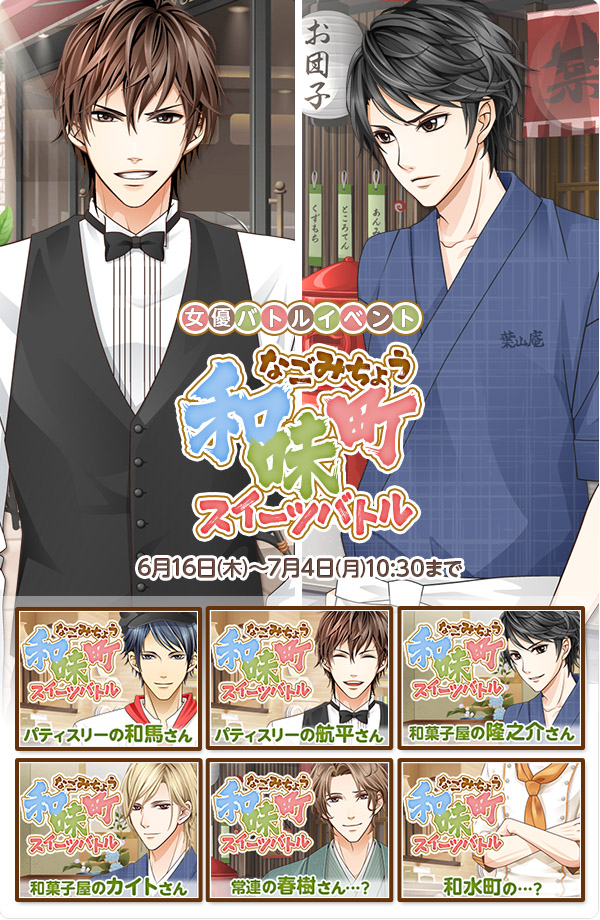 anipani株式会社は、スマートフォン向け恋愛ゲーム『君の秘密にドラマなキスを』にて、本日2016年6月16日(木)より、イベント「和味町スイーツバトル」を実施いたします。また、アバター用の新作ガチャの提供を開始いたします。